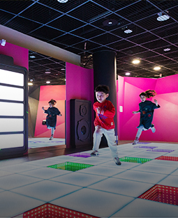 激しくステップを踏んで踊ると、その力が電気に変わります。自分が作り出した電気で徐々に華やかになっていくステージ!