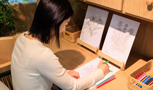 在爸爸妈妈休息的同时,孩子可以在“游戏活动”的空间里,利用积木、磁铁等各种玩具自由组织游戏,阅读书籍,享受情绪平稳的时光。虽然身处同一个空间,但他们可以体验到各自独立的休息时间。