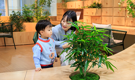 爸爸妈妈可以在专属空间“花园漫步”中,欣赏各种植物、聆听音乐、闻着芳香,