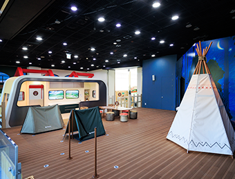 自らキャンプを計画・実行することで創造力と問題解決力を養うとともに、私たちの寝食住に必要なものについて知ることを目的とした展示です。