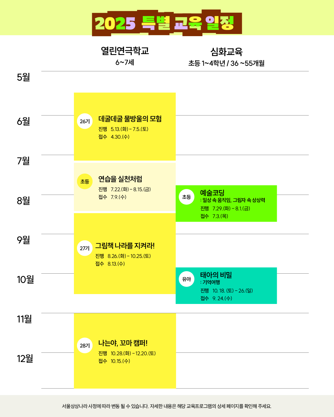 ※ 위 일정은 서울상상나라 사정에 따라 변동될 수 있습니다.